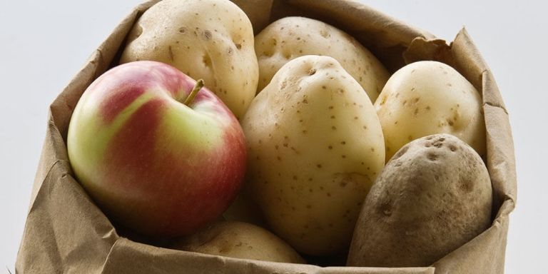 It’s simple, Nothing! Apples simply produce ethylene gas which helps keep potatoes from sprouting. Tip: keep your apples with your potatoes and away from other fruits, ethylene gas speeds up ripening, and can make other fruits go bad faster.