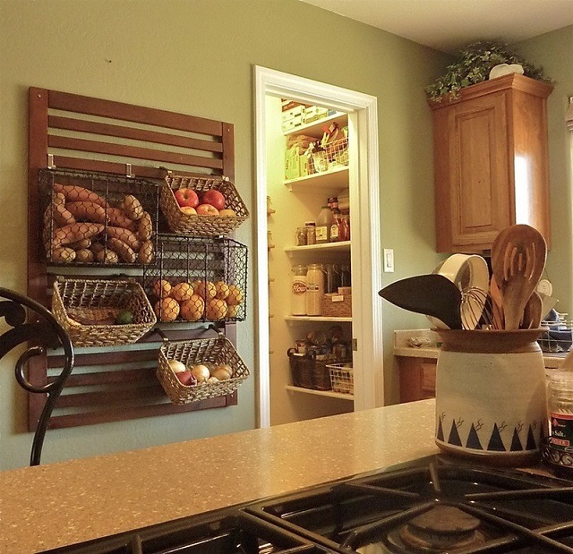 Onions and garlic do best in a dry and airy environment. Get a wire basket like this three-tier wall mount basket that’s economical and space saving as well.