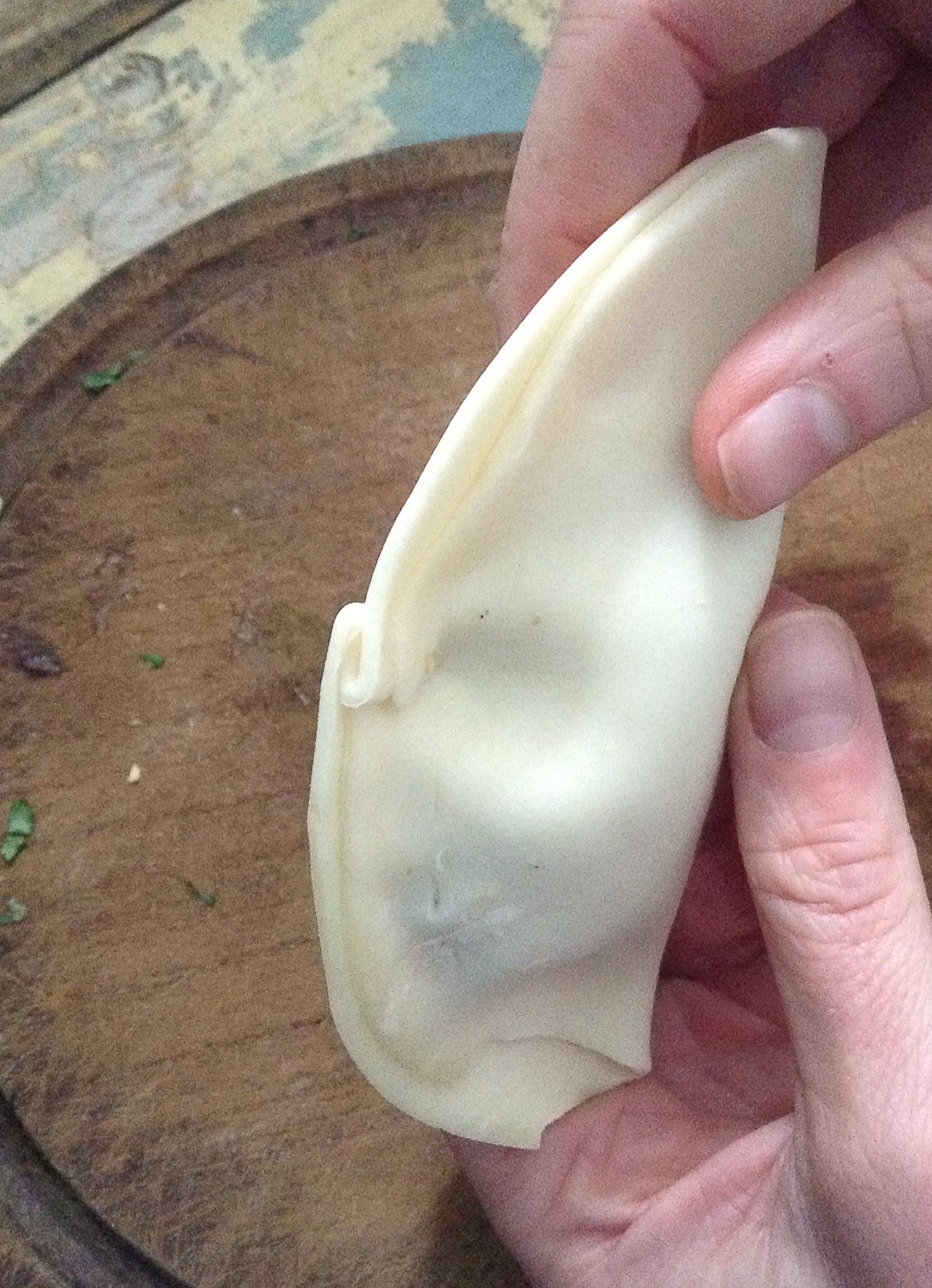 Press the edges together and then, starting at the top, grab hold of the edge in your left and right hand, pinch lightly and bring the edge in your right hand down and behind the edge in your left hand, pinch together, so it looks like this: