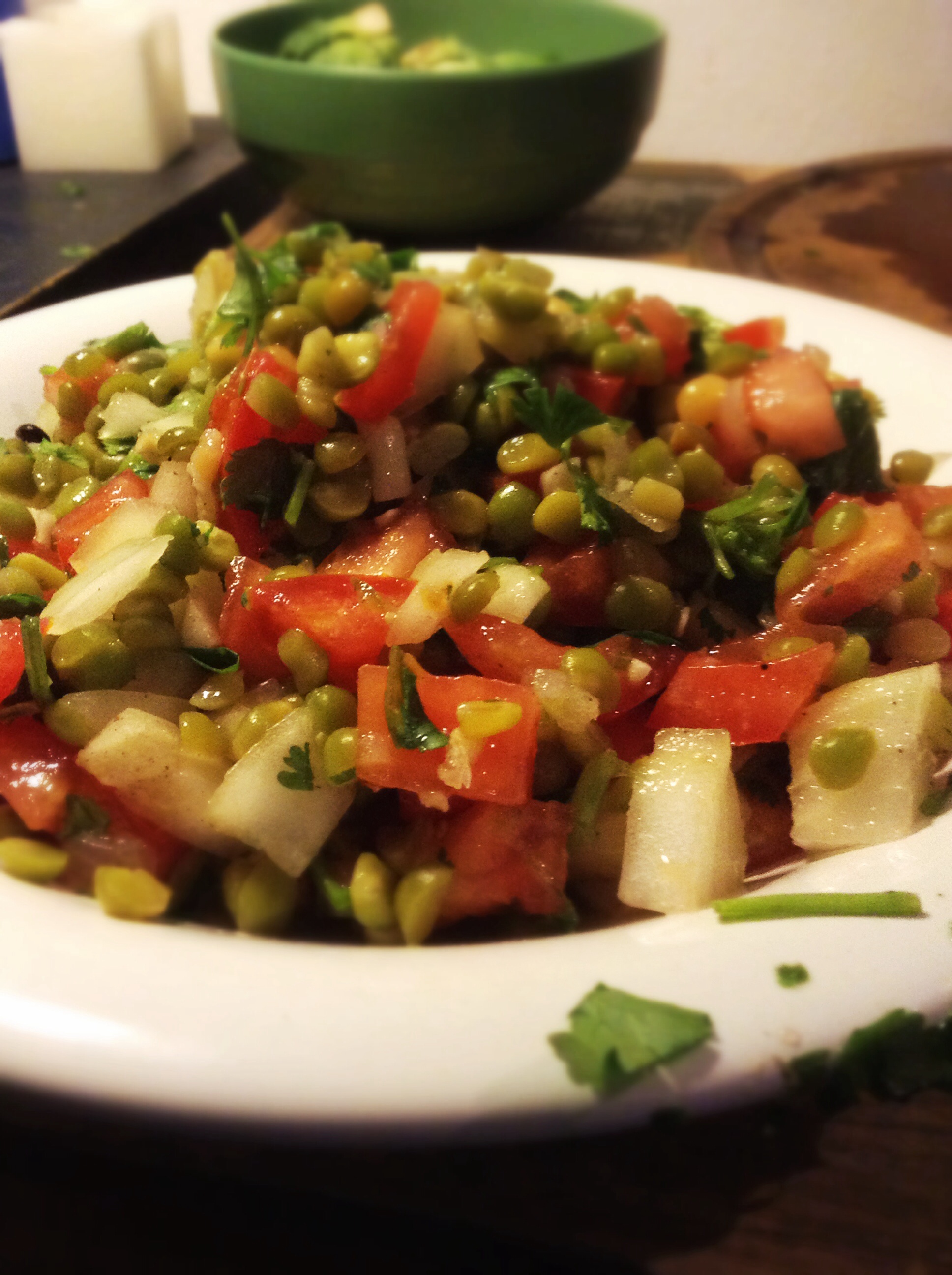I could go on. Really, I could. But, I won’t. Instead, here is the recipe for split pea salsa. Split peas are often overlooked in my opinion, they are good for so much more than just soup! In this recipe they provide a hearty texture and a big boost of protein and fiber. Plus, unlike other legumes, they do not require overnight soaking- they cook up in only about 20 minutes soyou can throw this together without planning ahead for days! We used this salsa for our nachos, but it would also be good on a salad, breakfast burrito, as a dip for chips, really your imagination is the limit with this salsa.