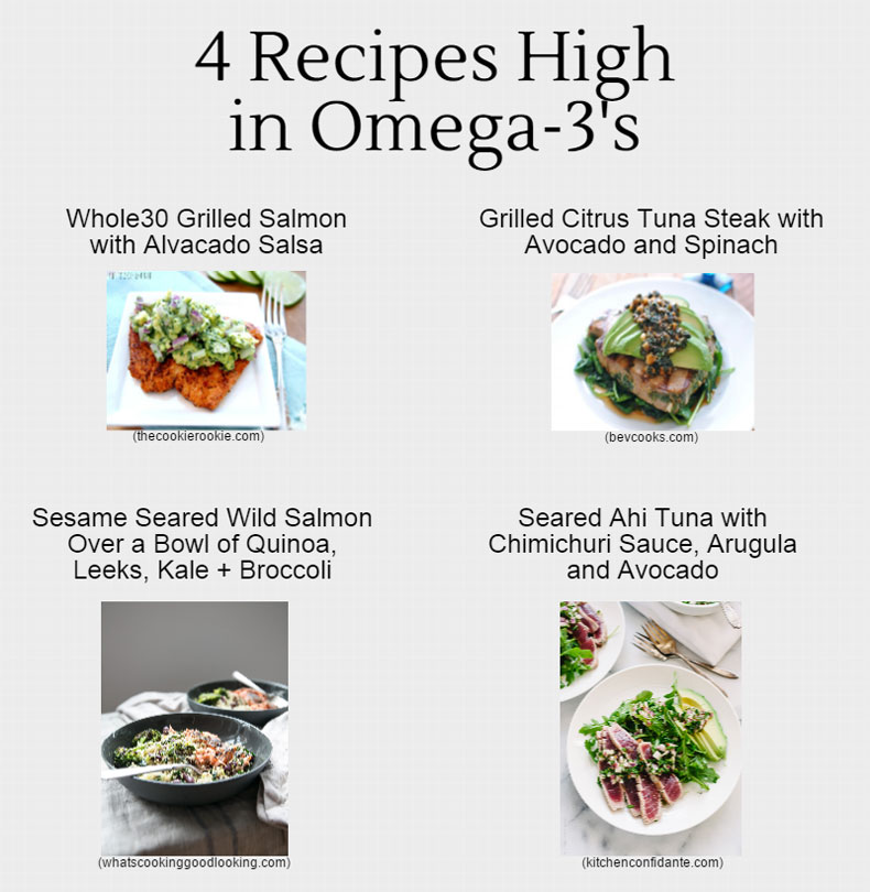 Omega-3’s are currently the darling of the nutrition world, and for good reason. Omega-3’s help reduce inflammation and help keep the heart healthy. One of my favorite ways is through flax seeds. They provide fiber and Alpha Linolenic Acid (ALA), a precursor for omega-3 fatty acids. They also provide an awesome nutty flavor to smoothies, cereal, quick breads and can even be used as an egg/butter replacement in baking. Salmon is another great source of Omega-3 fatty acids, but so are other fatty fish like sardines, mackerel, tuna and anchovies. Sardines and anchovies are also some of the most sustainable fish in the ocean which make them an even better choice. Walnuts, canola oil and chia seeds are also good sources of omega-3’s!